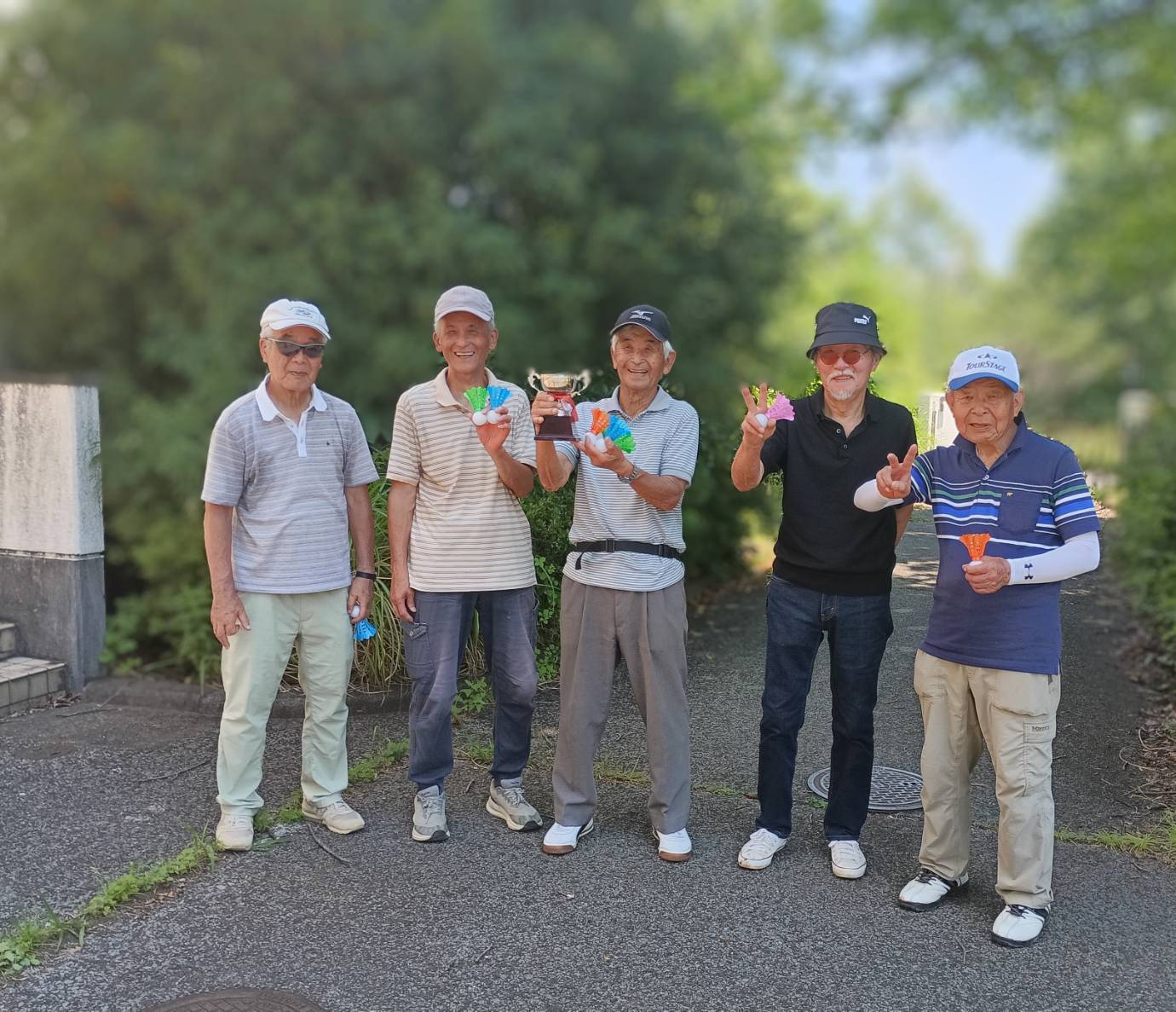 上位5名の成績および写真は以下のとおりです。写真にはホールインワンを達成した庭山さんも写っています。全体の成績は こちらをご覧下さい。