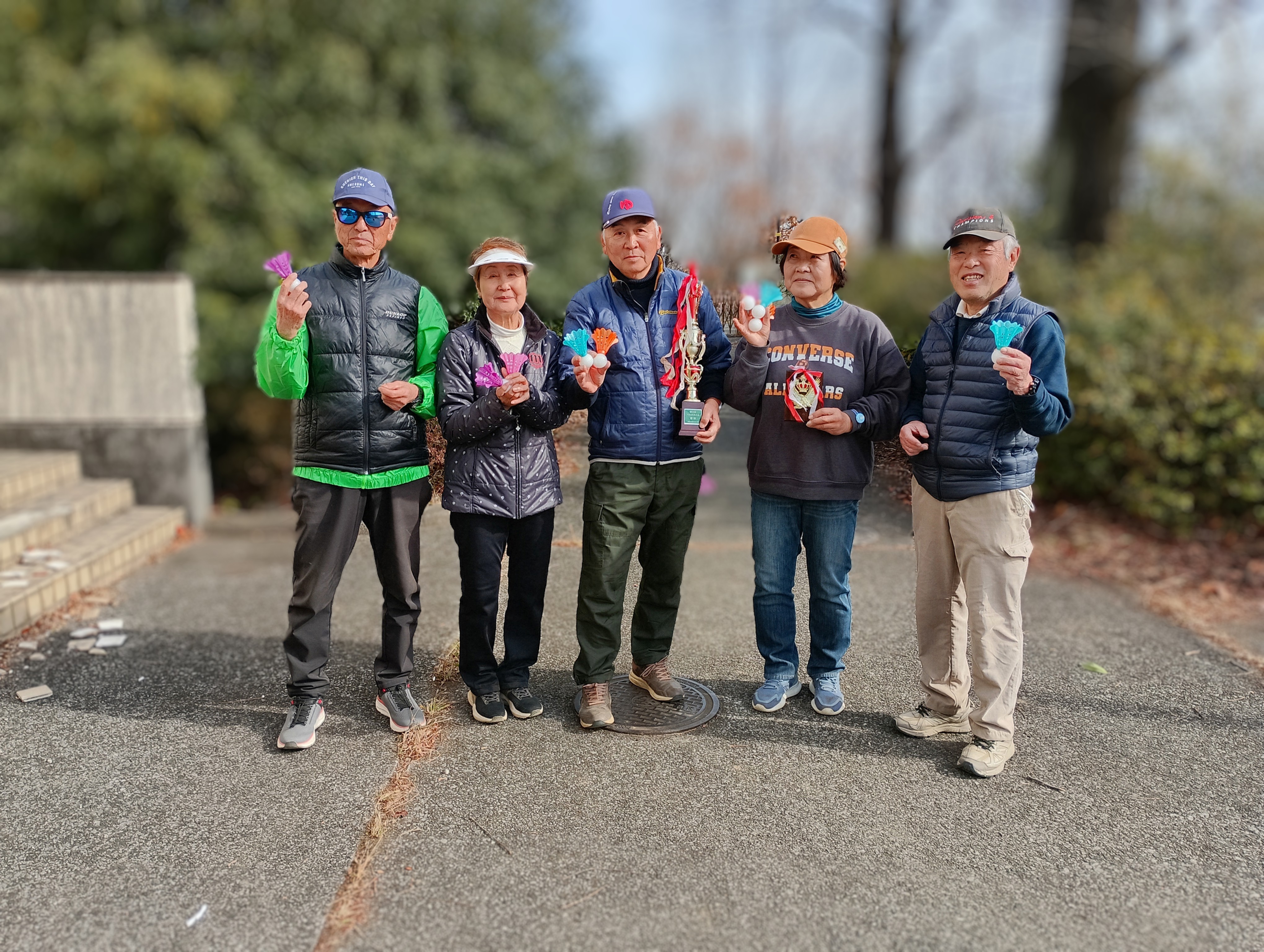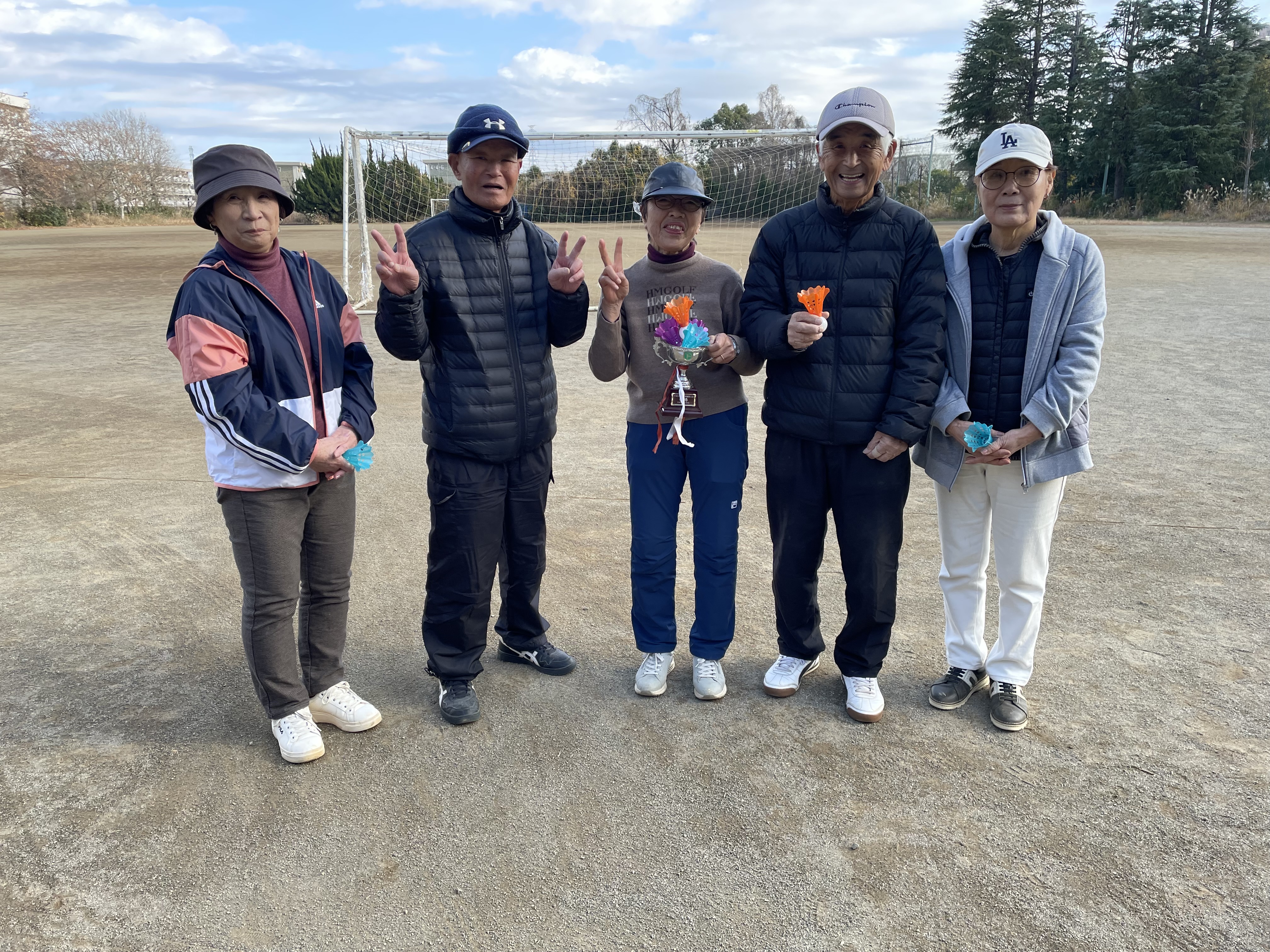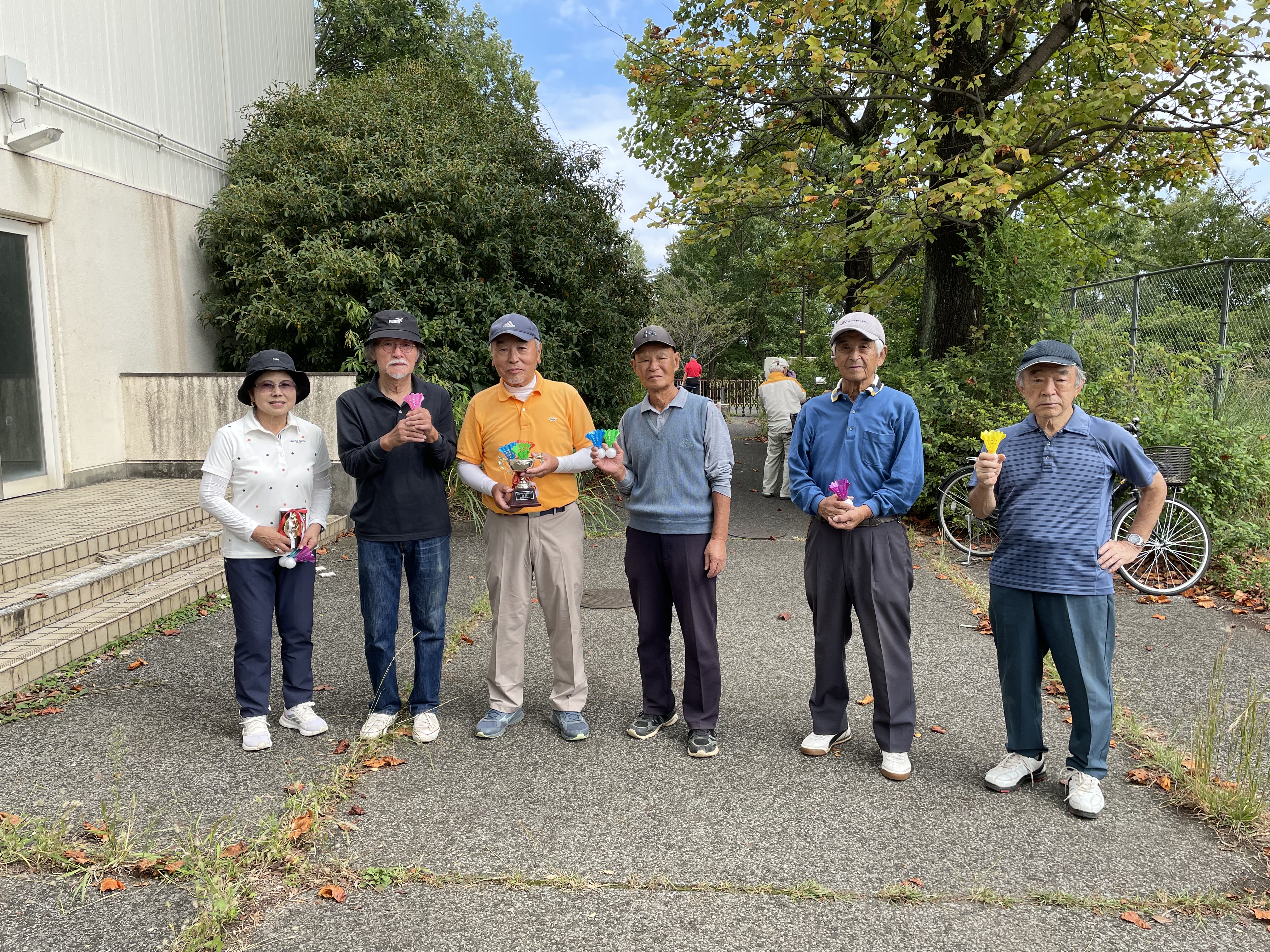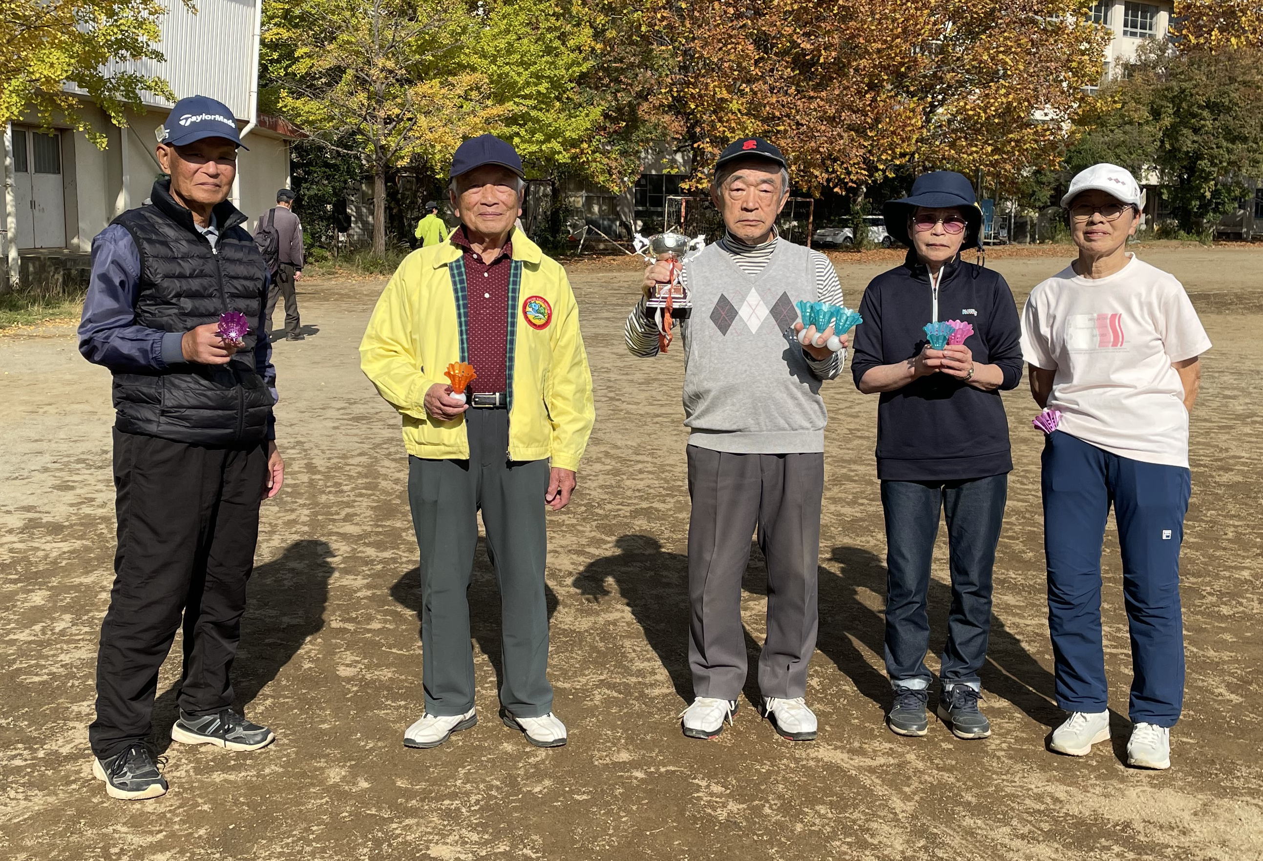 2025年11月18日(火)秋の親睦旅行を開催いたしました。前日までの天気予報では寒くなるということでしたが晴天に恵まれ暖かな日差しの下で行うことができました。コースは金川の森ターゲットバードゴルフ場を利用いたしました。INコースで枯葉が多く、コースレイアウトが分かりにくい状況でした。この大会も新ペリア方式を採用いたしました。優勝は石垣さんでした。上位5名は下記の表のとおりです。